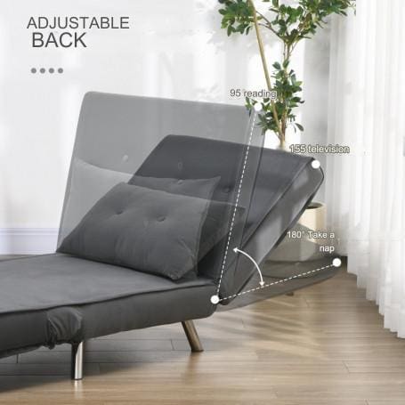 Mångsidig 3-i-1-design: Använd som bäddsoffa, vilstol eller enkelsäng. Justerbart ryggstöd: Tre lägen med en maximal lutning på 180° för optimal komfort. Lyxig komfort: Klädd i mjuk sammet, med tjock vaddering och en extra kudde för extra stöd. Stabil konstruktion: 4 robusta stålben säkerställer stabilitet och hållbarhet. Kompakta mått: Stol: 77 x 88 x 83 cm. Säng: 191 x 77 x 27 cm. Maximal belastning: 120 kg.