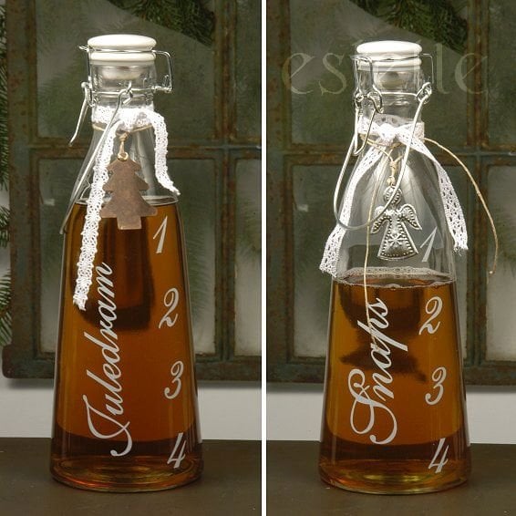 Advent-flaska i glas med patentlock – 1 liter. Höjd: 29 cm, diam: 10 cm. Välj mellan texterna: Juledram Snaps