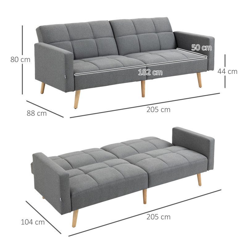 Bäddsoffa med Justerbart Ryggstöd – Grå Linnetyg