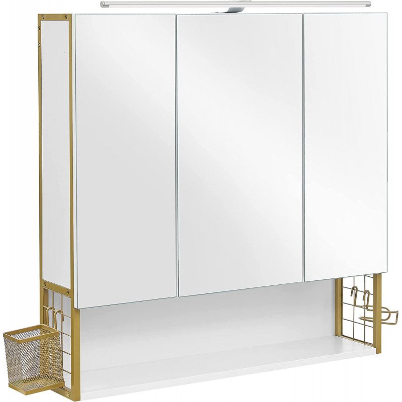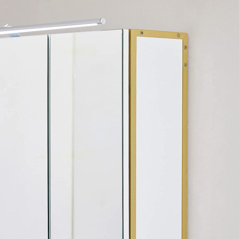 Stilrent spegelskåp i vit-guld som ger badrummet en lyxig känsla – sidogallerna adderar en unik designDetalj