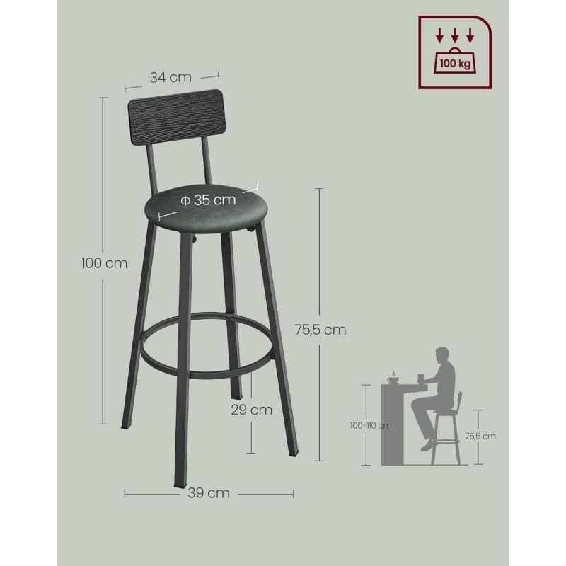 Kvalitet och hållbarhet: Tillverkade av högkvalitativ spånskiva och robust stål, säkerställer de stabilitet och hållbarhet. Med en sitthöjd på 75,5 cm passar de perfekt under köksön eller vid balkongen.