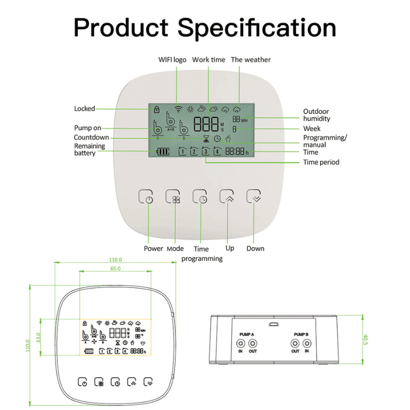 Enheten kan programmeras till att styra två olika vattenslingor och sedan kan du koppla ett flertal blommor till enheten. De två olika slingorna kan programmeras separat så att blommorna får individuella bevattningstider för bästa möjliga resultat.