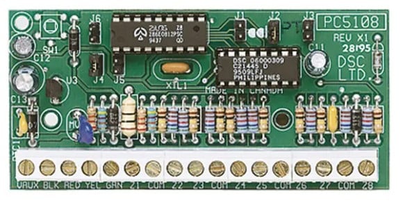 DSC Hardwire Zone Expander PC5108 är ett kraftfullt utökningskort som gör det möjligt att ansluta upp till 8 ytterligare hårdvaruzoner till DSC PowerSeries-larmsystem.