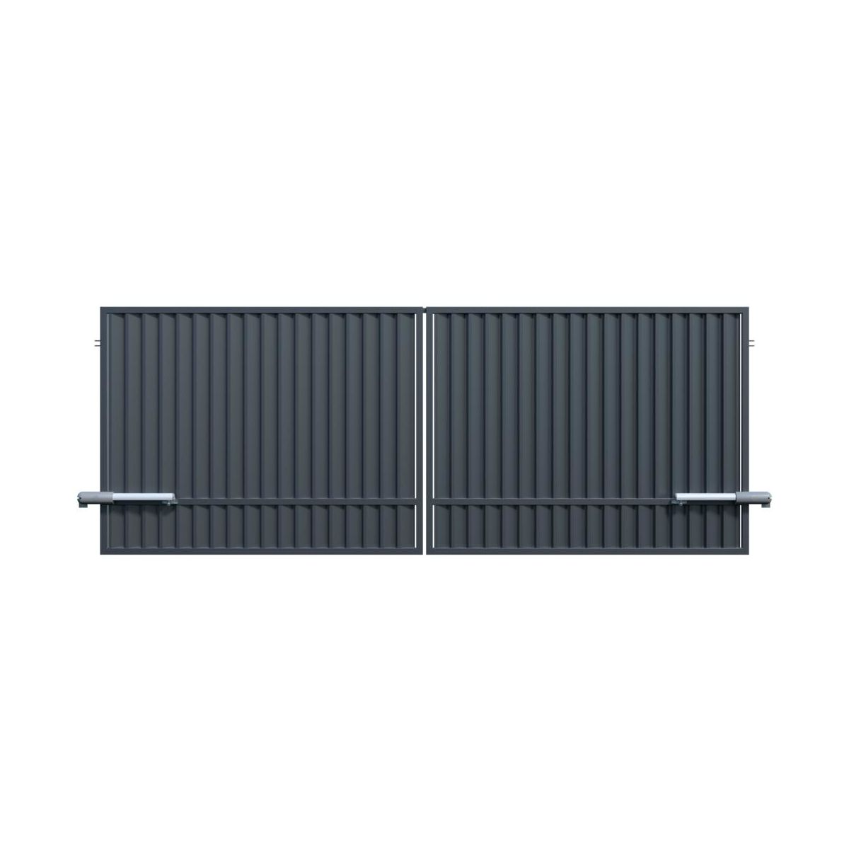 Bredd: 500 cm Höjd: 150 cm Öppningsriktning från utsidan: Central öppning Automatisk (drivenhet): Ja Färg: Antracit Färg / RAL färg: 7024 Aspekt: Matt Ytbehandling: PULVERLACKAT Fyllningsmaterial: Galvaniserat stål Väggtjocklek: 4 mm Vikt: 120 kg Medföljande tillbehör: Gångjärn Möjlighet att ansluta enheten: Ja Höjd vid lägsta punkt: 150 cm Bredden mellan pelarna: 504 cm Pelarhöjd krävs: 2,2 m Leverans: 8-10 veckor Observera att grindstolparna, fästanordningar, handtaget, låsanordning, motor till grinden inte ingår i priset, utan är tillbehör. Stolpen och markfästet är tillbehör som säljs separat. OBS! Detta staket är endast grundmålat och bör målas igen med en täckande kulör.