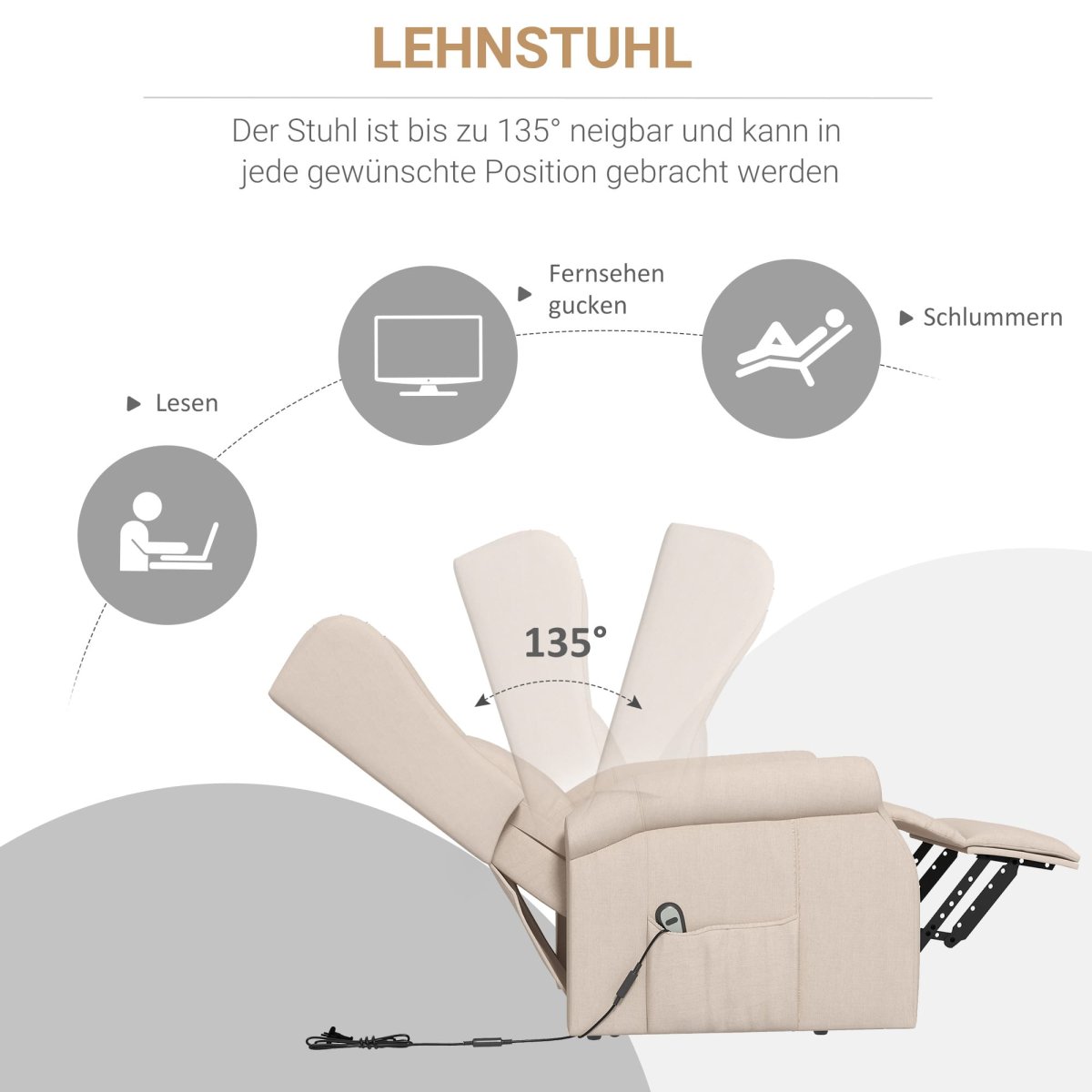 Elegant Elektrisk Relaxstol med Justerbart Ryggstöd och Fotstöd – Krämfärgad