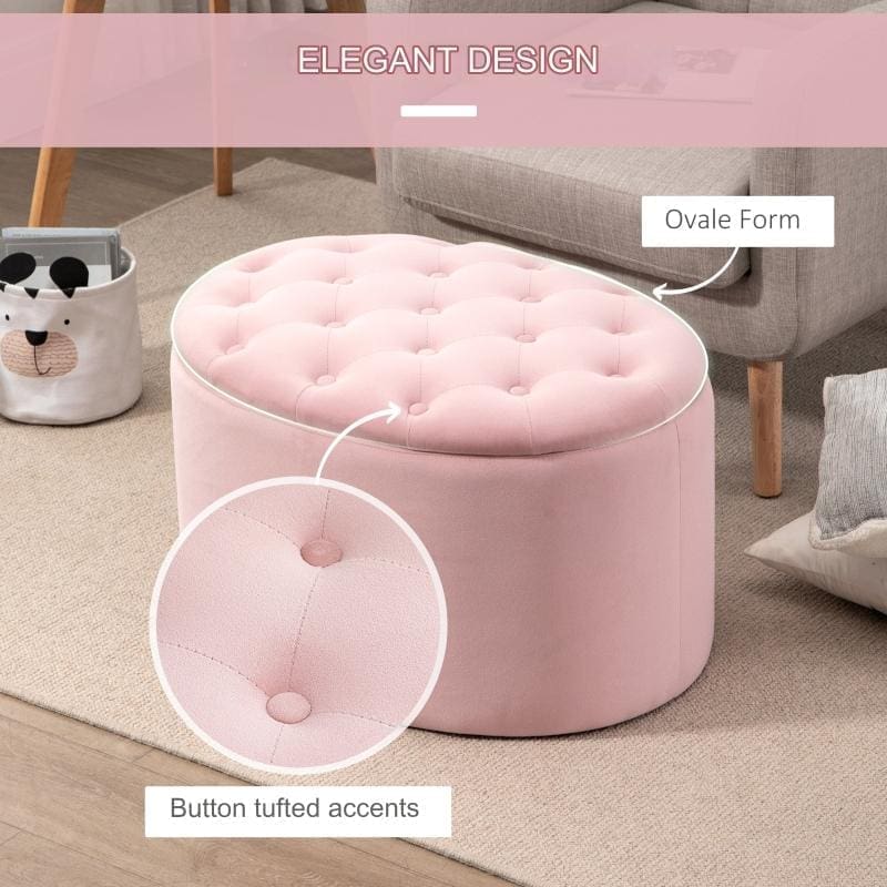 Elegant Oval Förvaringspall i Sammet – Rosa 71 x 52 x 42 cm