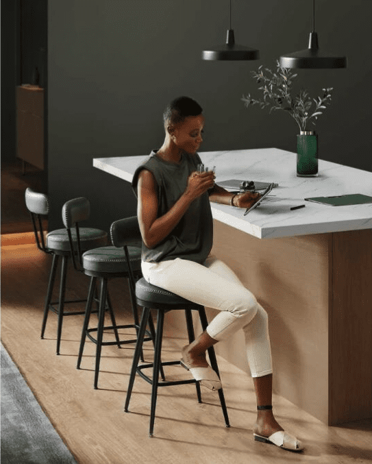 Ge ditt hem ett stilfullt lyft med våra barstolar från EKHO-kollektionen. Denna lockande blandning av lyxigt konstläder, fina sömmar och avsmalnande metallben hedrar hantverket och förvandlar din inredning till en ny nivå av sofistikering.