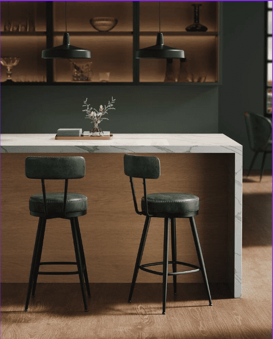 Eleganta Barstolar från EKHO i grönt Konstläder med 360° Rotation – 57 x 57 x 101 cm