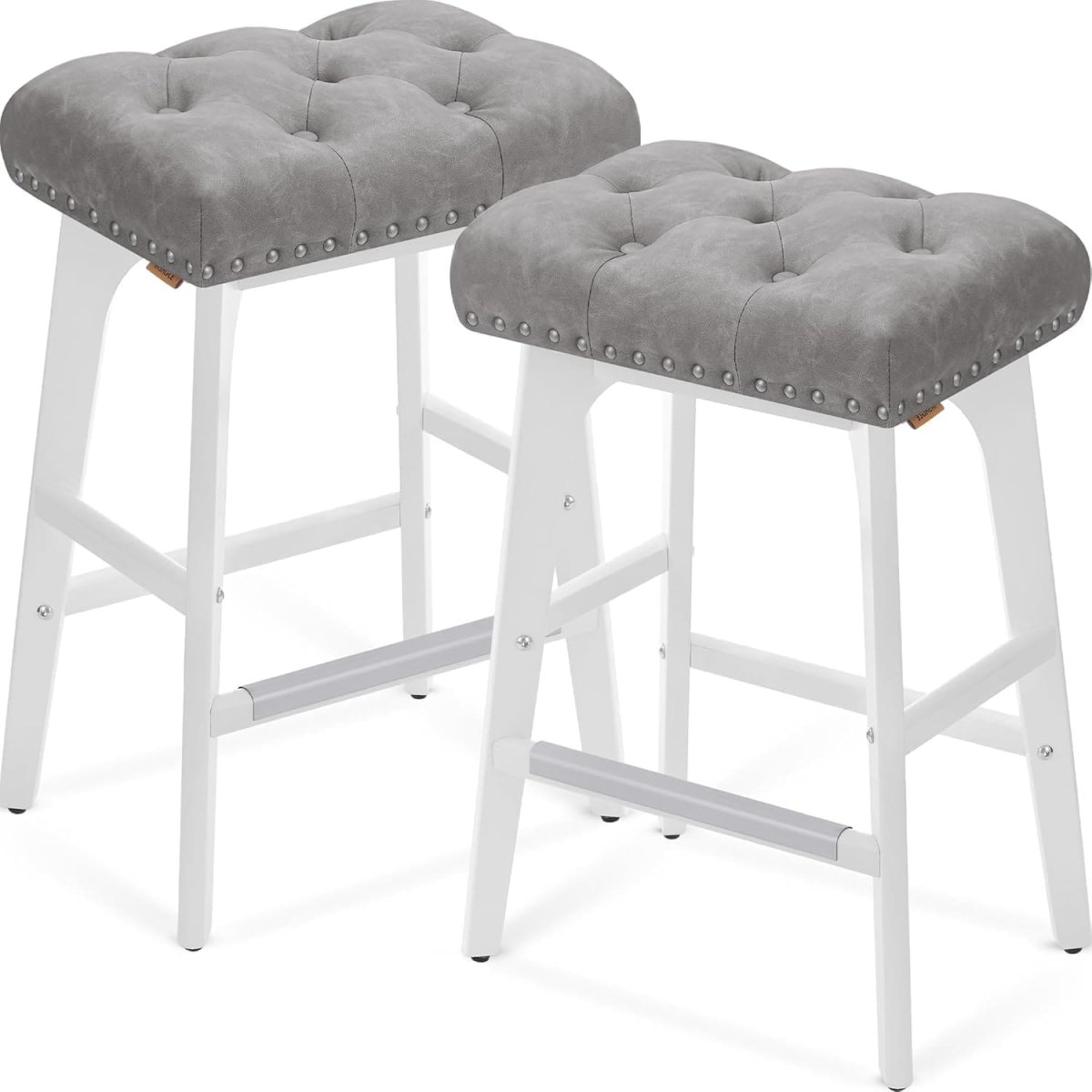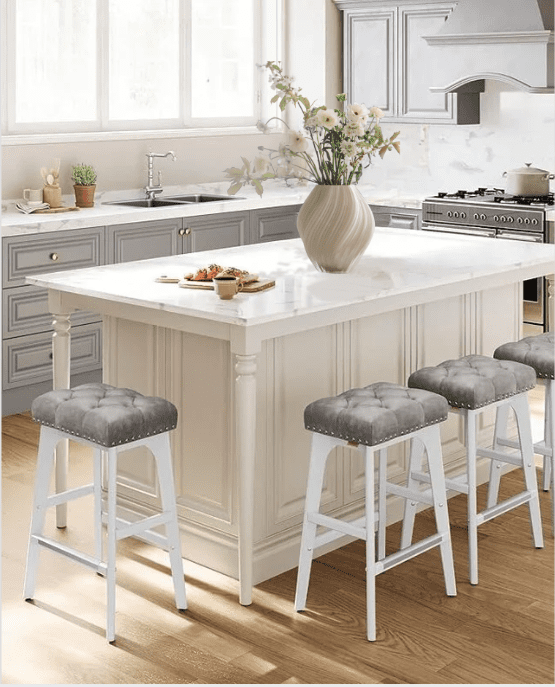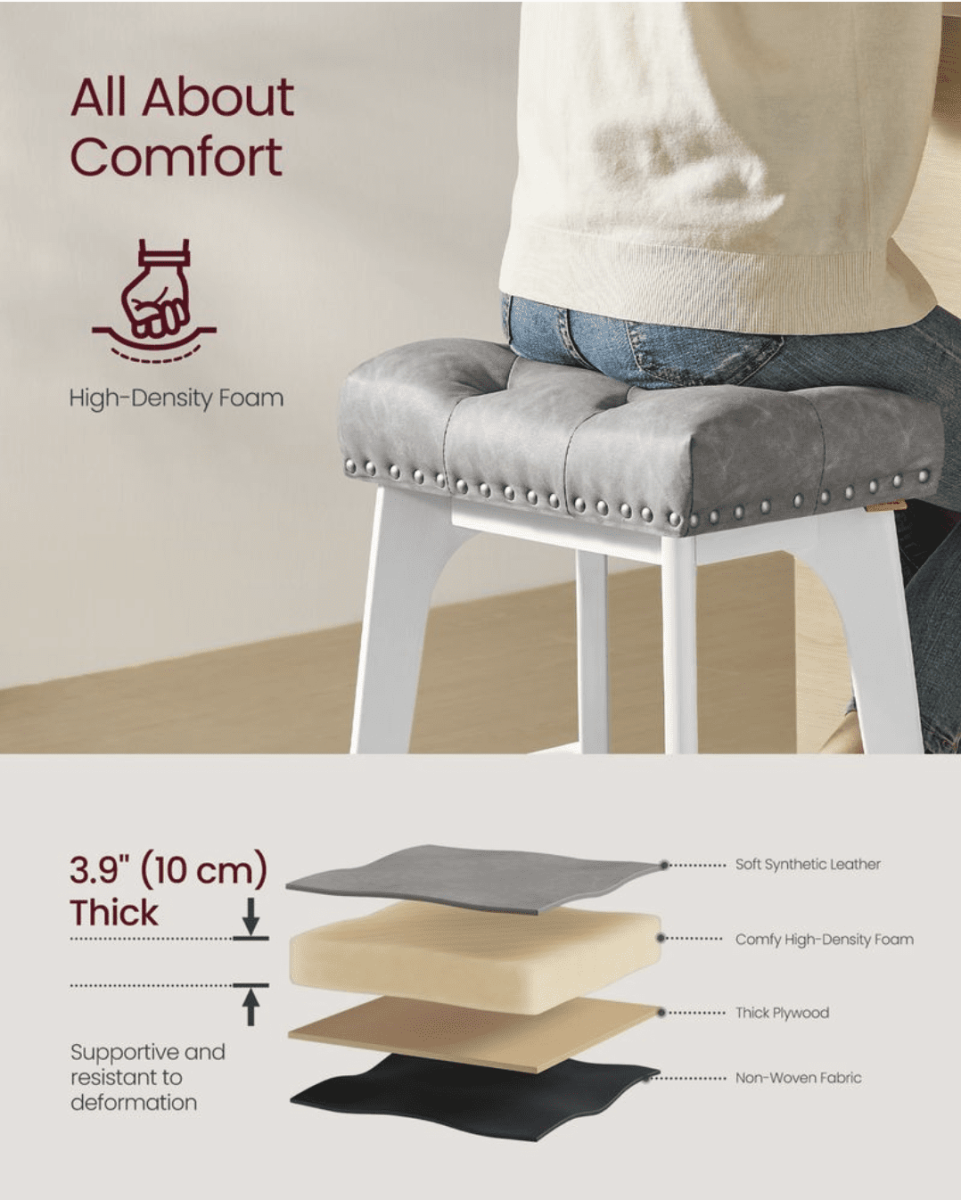 - Klassisk elegans: Barstolarna har en tuftad design och dekorativa nithuvudkanter som ger en sofistikerad look.