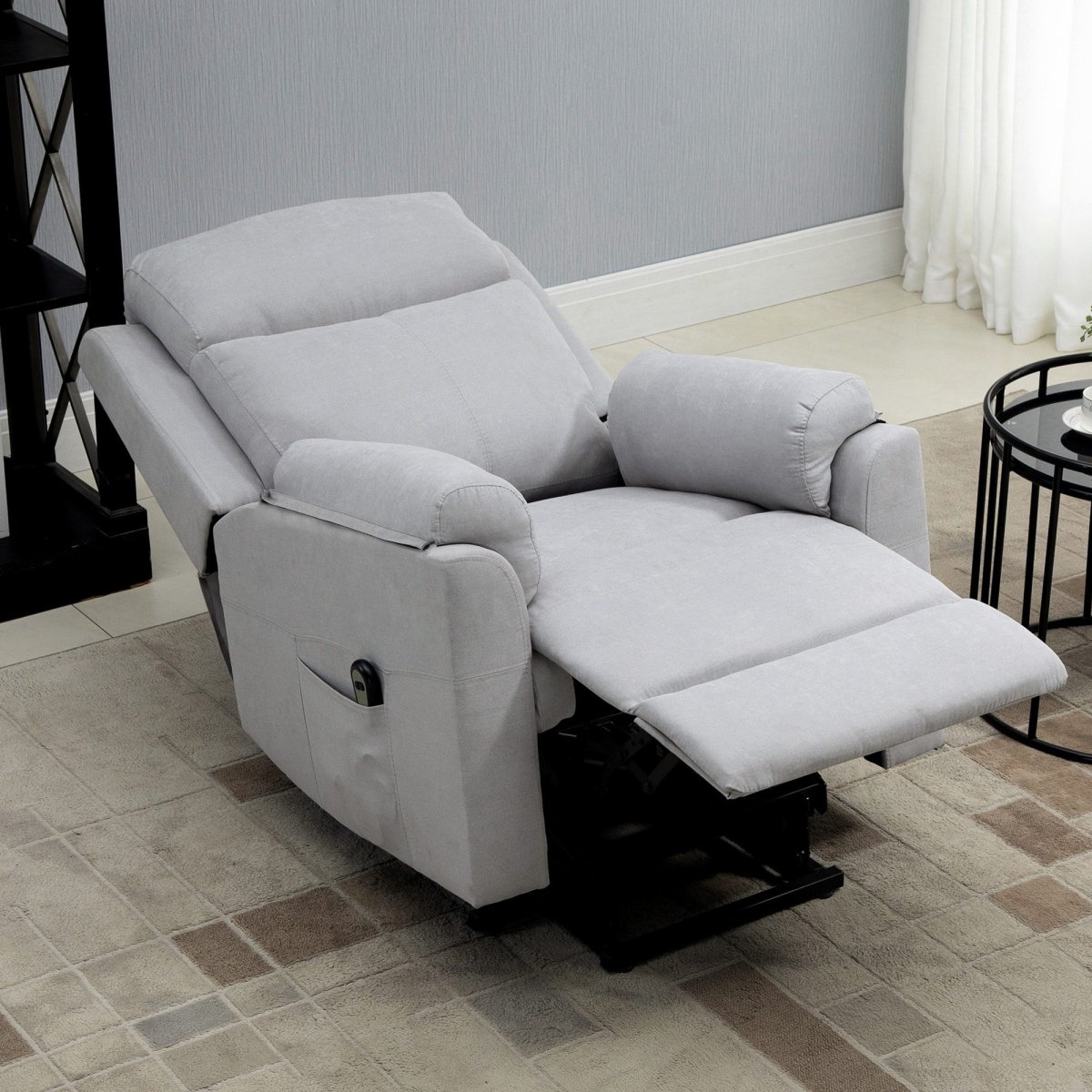 2-i-1 Massagefåtölj med Ellyft & Fjärrkontroll – Grå Linneimitation