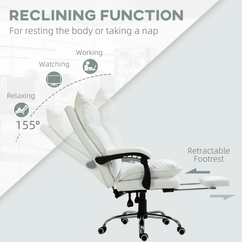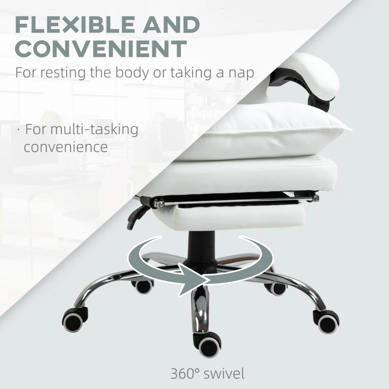 Ergonomisk Kontorsstol i PU-Läder med Justerbart Ryggstöd och Höjd – Vit