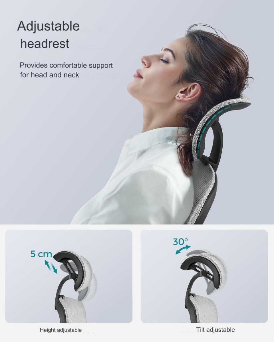 Förbättra din arbetsmiljö med denna ergonomiska kontorsstol, designad för att ge fullständigt stöd och komfort under hela dagen. Stolen erbjuder flera justeringsmöjligheter för huvud, rygg, höfter och armar. Sätet är justerbart i 3 cm fram/bak och består av högdensitetsskum för långvarig komfort, klätt i hållbart canvasmaterial. Ryggstödet kan vinklas i tre positioner: 90°, 115° och 135°, med ett justerbart huvudstöd och 4D-armstöd som kan anpassas för optimal position. Ländryggstödet är utrustat med två TPR-massageblock som kan justeras i både höjd och djup för att ge extra avlastning.