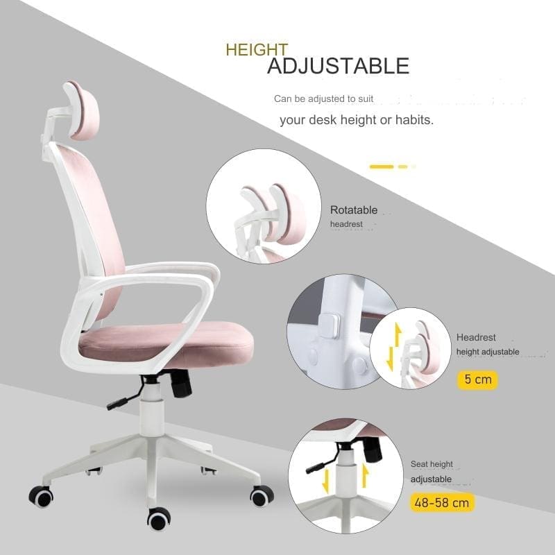 Ge din arbetsplats ett lyft med denna ergonomiska kontorsstol i sammetsliknande tyg. Designad för att kombinera stil och komfort, erbjuder stolen tjock vaddering som ger utmärkt stöd under långa arbetsdagar. Det mjuka, eleganta tyget skapar en lyxig känsla, medan den stabila plastpartikelramen säkerställer långvarig hållbarhet. Stolen har en vippfunktion som gör det möjligt att luta sig tillbaka och slappna av. Justera enkelt sitthöjden för att passa dina behov, och dra nytta av det flexibla nackstödet som kan vridas upp och ner för optimalt stöd. Med högkvalitativa gasfjädermekanismer och smidiga, svängbara hjul är det enkelt att anpassa och flytta stolen efter behov.