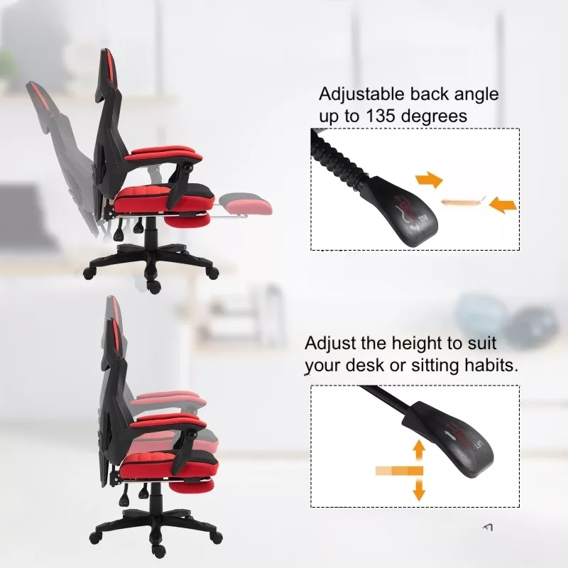 • Justerbart Ryggstöd: Justera ryggvinkeln upp till 135 grader och använd det infällbara fotstödet för extra avkoppling.