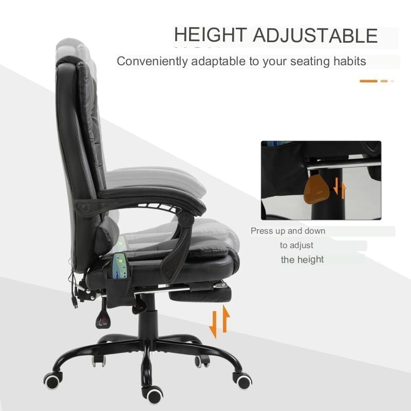 Denna ergonomiska kontorsstol kombinerar stil och funktion med sin avancerade massagefunktion och komfortabla design. Med totalt 7 vibrationsmassagepunkter – 5 i ryggstödet och 2 i sätet – ger stolen optimal avkoppling under arbetsdagen. Den är utrustad med en fjärrkontroll (med förvaringsväska) för enkel styrning av massagefunktionerna. Stolen har ett justerbart ryggstöd som kan lutas från 90° till 155°, samt ett infällbart fotstöd och en integrerad ländryggskudde för extra komfort. Perfekt för den som spenderar mycket tid vid skrivbordet.