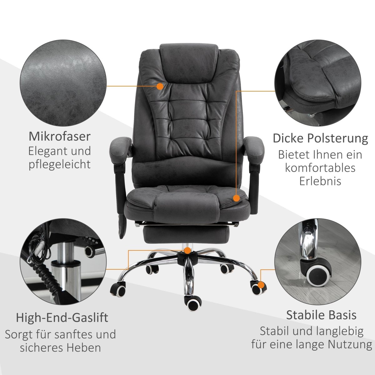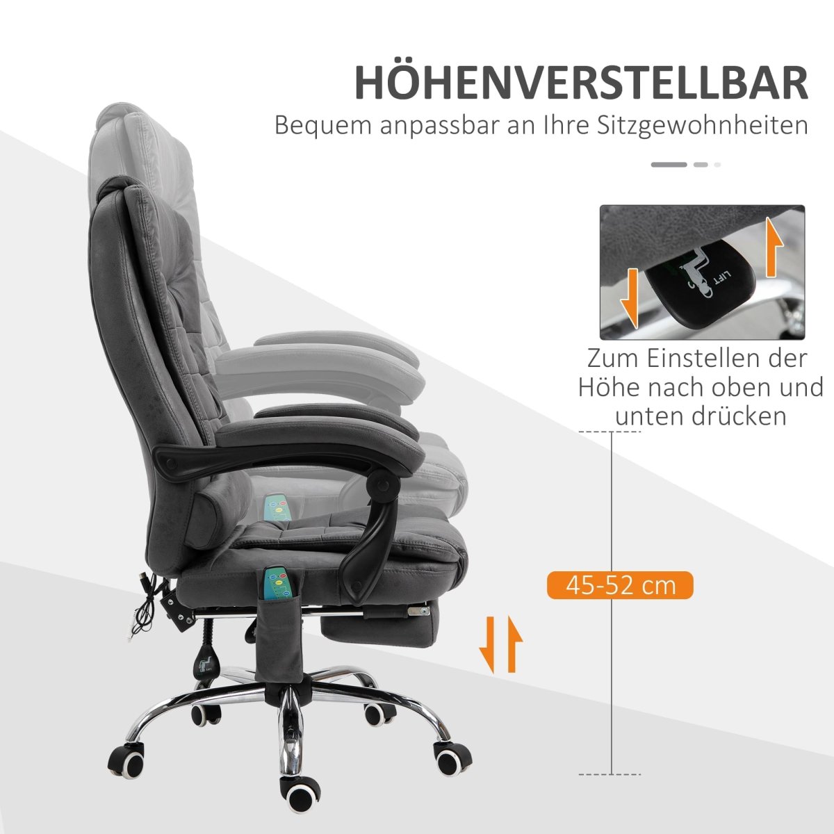 Njut av komfort och avkoppling under arbetsdagen med denna ergonomiska kontorsstol, utrustad med både vibrationsmassage och svankvärmefunktion. Med sex vibrationspunkter och värme i svankstödet erbjuder stolen avslappning och lindring för trötta muskler. Ryggstödet kan lutas upp till 135° för en bekväm viloposition, medan ett utdragbart fotstöd ger extra stöd när du vill sträcka ut benen.