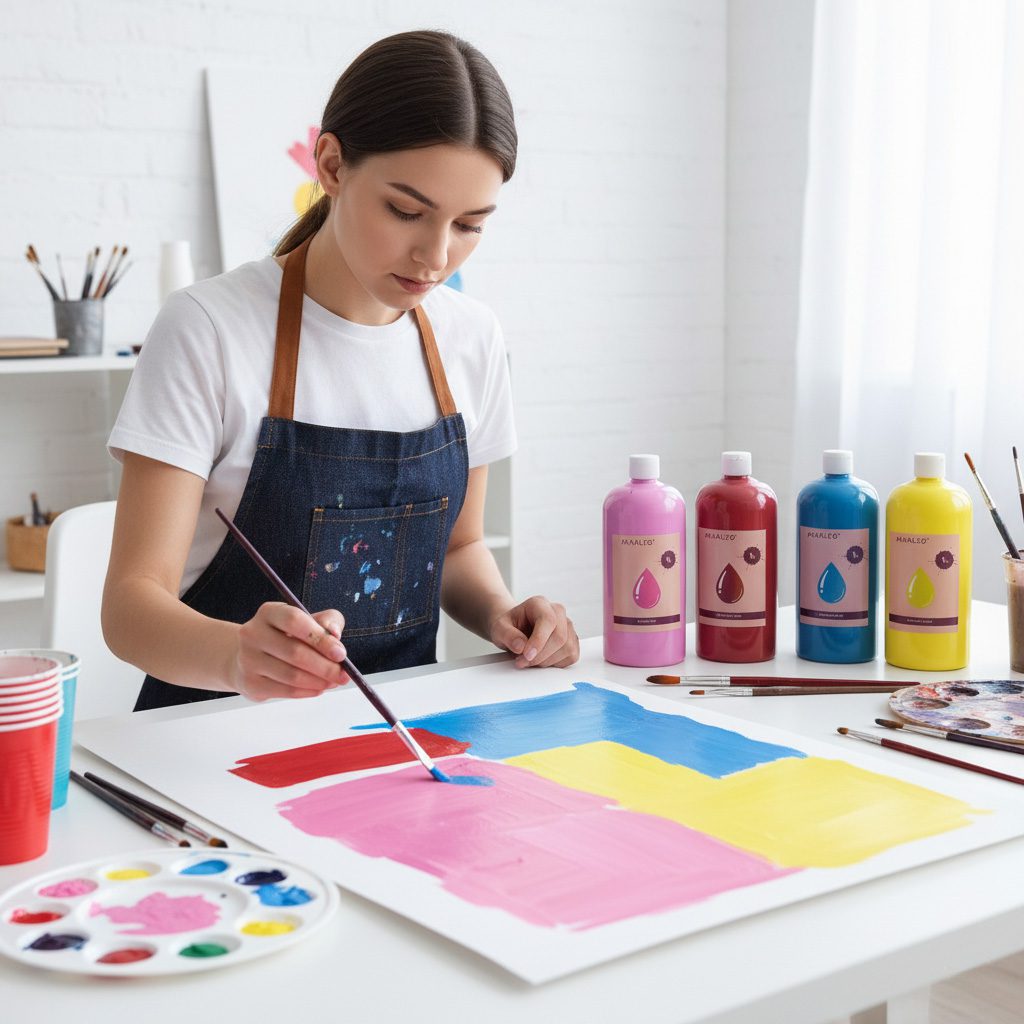 Måla med glädje! Ett färgstarkt set med 12 plakatfärger i stora 1000 ml-flaskor – perfekta för skola, hem och ateljé.