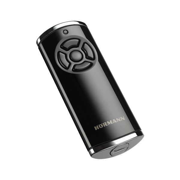 4-kanals 868 Mhz handsändare/fjärrkontroll med BiSecur-system och fäste för nyckelknippa. Stilfull yta i svart högglans med kåpor i förkromad pressgjuten zink. Fjärrkontrollen indikerar om porten är öppen eller stängd och passar Hörmanns motorer SupraMatic och ProMatic från 2003 och framåt.