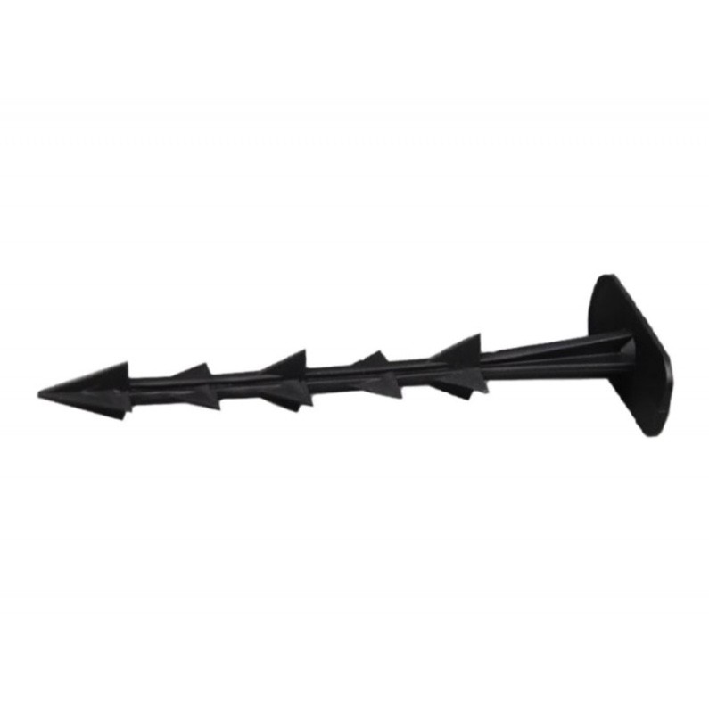 Förankringsspik i plast för att fästa skuggväv i jorden. Tryck eller spika spiken genom duken och ner i jorden. Teknisk information: Längd: 25 cm 50st st./pkt Funger från -35°C till 80°C Lätt att montera Producerad i EU