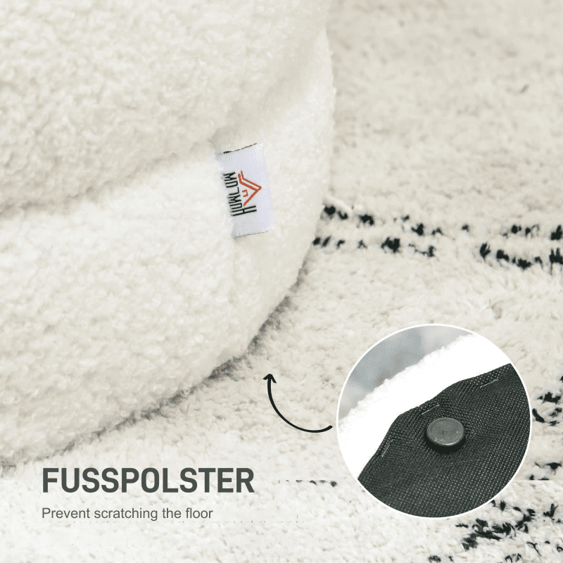 Elegant och mångsidig rund pall – perfekt som extra sittplats eller fotstöd Utrustad med ett mjukt teddyfleeceöverdrag och tjock vaddering för optimal komfort. Pallens stabila stålram har halkfria fötter som skyddar golvet från repor. Med sin lättviktsdesign på endast 4,6 kg är den enkel att flytta runt i hemmet. Mått: Ø40 x 45 cm Maxvikt: 120 kg Levereras färdigmonterad
