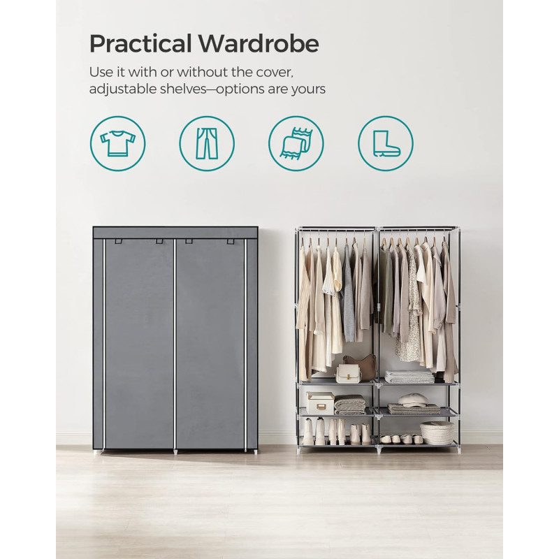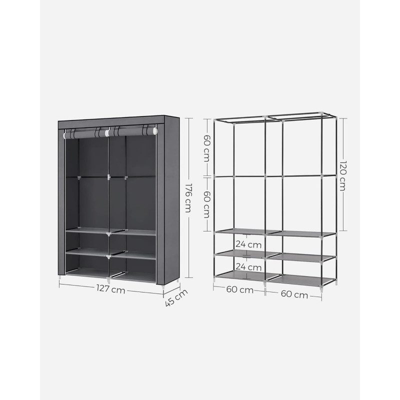 Garderob i Tyg med Dubbel Klädstång – Ljusgrå, 127 × 45 × 176 cm