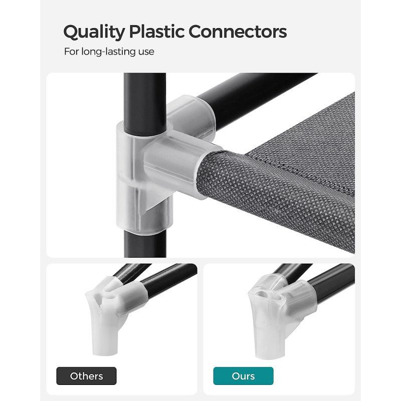 ✔ Stabil och stark konstruktion med 16 mm stålrör och maxbelastning på upp till 15 kg per klädstång✔ Smart och mångsidig förvaring med två hängsektioner samt hyllor för skor och väskor, med max hänghöjd på cirka 120 cm✔ Extra förvaringsfickor med 4 sidofack för småsaker som accessoarer och tillbehör✔ Enkel montering som går snabbt och kräver inga verktyg✔ Paketet innehåller tyggarderob, tippskydd och instruktioner