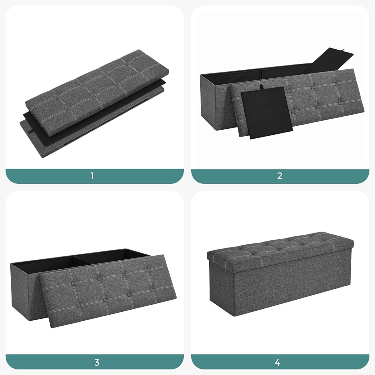 - Rymlig och praktisk: Med måtten 110 x 38 x 38 cm erbjuder denna förvaringsbänk gott om utrymme för att organisera dina tillhörigheter. Perfekt för att förvara böcker, gosedjur eller oanvända kläder som behöver en plats.