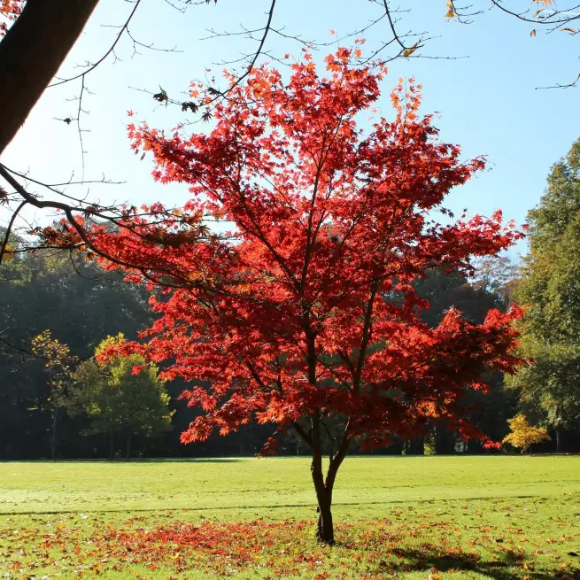 Den passar både som solitär och i grupp. De röda bladen skapar vackra kontraster i trädgården och ger en lite exotisk touch.