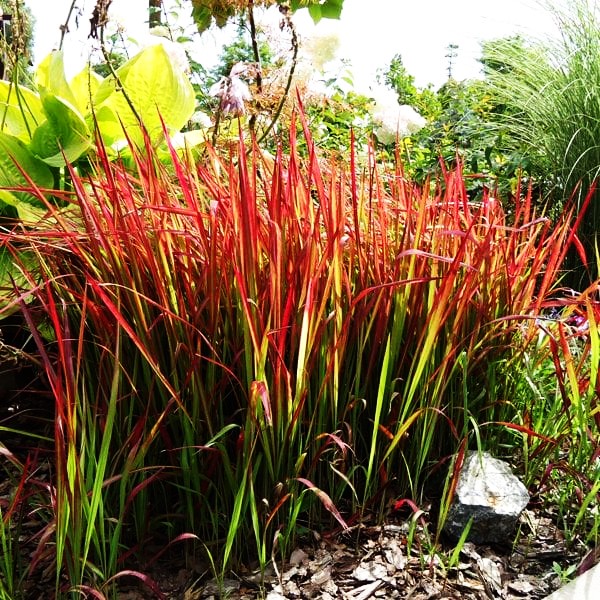 Japanskt blodgräs ‘Red Baron’ är ett dekorativ gräs med effektfulla röda bladtoppar och spetsiga upprätta täta tuvor. Gräset kommer att blir rödare under sensommaren. Kontrastväxt i plantering med andra gräs, perenner, buskar och barrväxter. Ett fantastiskt gräs i kruka i kombination med sommarblommor eller höstplantering. Klippning ska ske på våren när frostrisken är över. Vintertäckes och skyddas mot vinterväta.