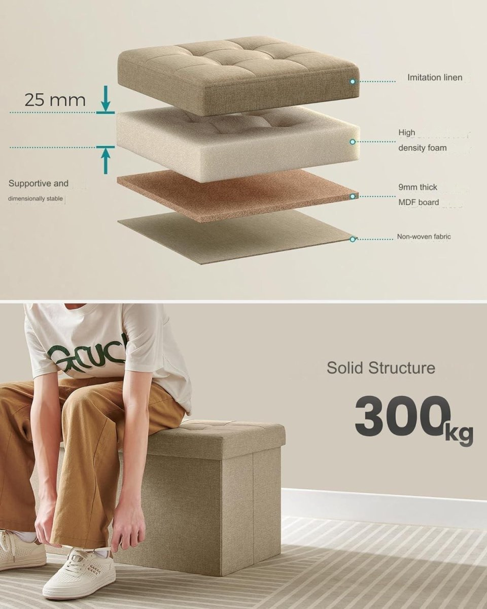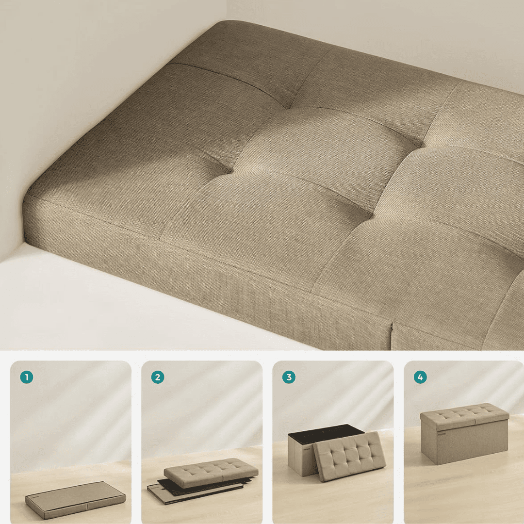 - Maximerar utrymmet: Stort förvaringsutrymme kombinerat med elegant design, perfekt som både sittplats och fotstöd.