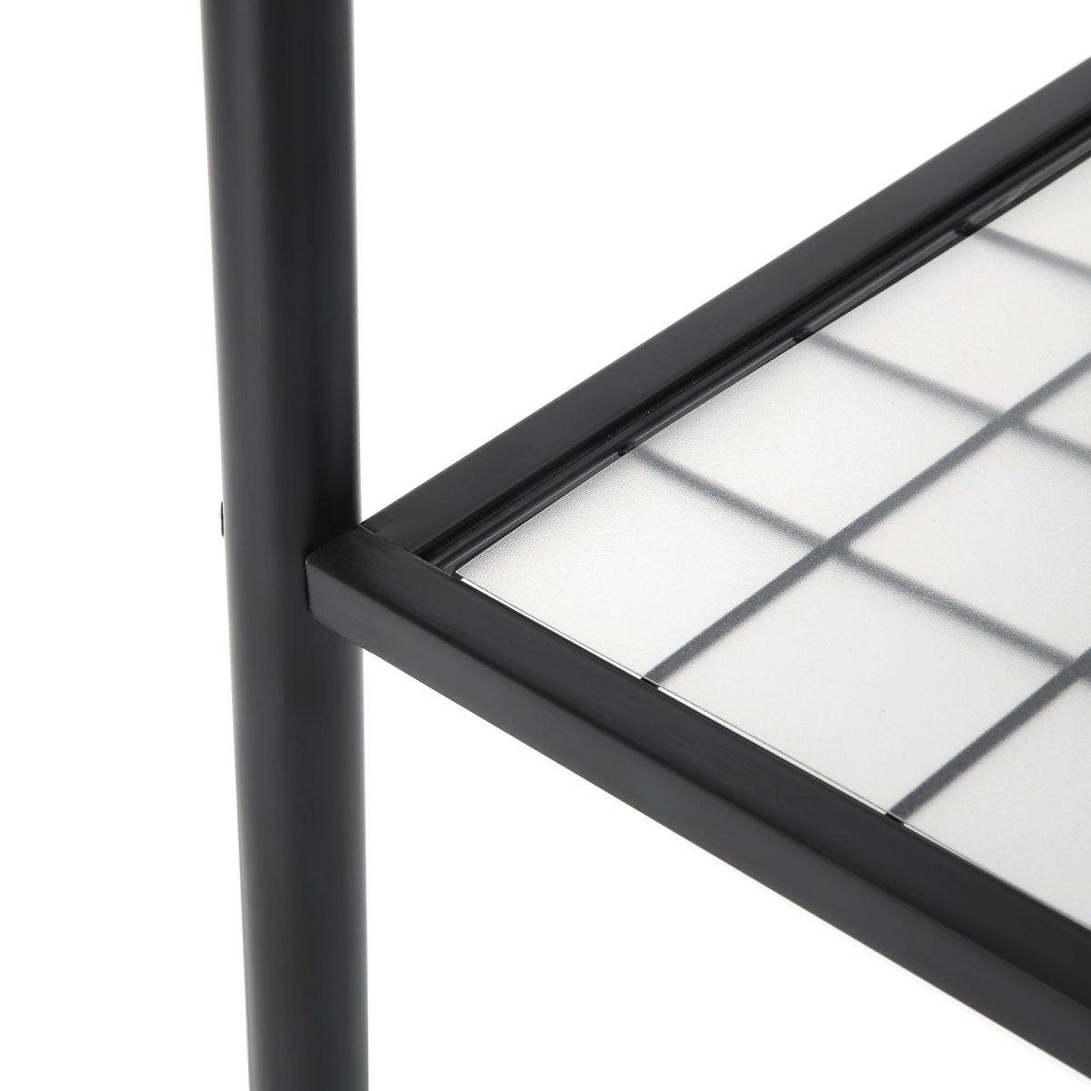 Medföljande plastplatta till hyllan gör att även små saker eller högklackade skor kan stå stadigt utan att trilla igenom gallret