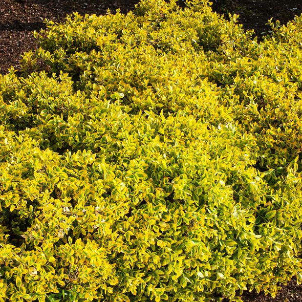 Låg buske med gulbrokiga blad som sitter kvar på vintern, då skiftar det gula över i rosa toner. Fin som marktäckare. Trivs bäst i väldränerad, mullblandad jord. Ej ätbar.