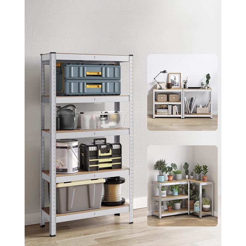 Organisera ditt hem, garage eller förråd med en stabil och hållbar förvaringshylla som klarar tung belastning utan att tappa formen. Denna kraftiga hylla är tillverkad av slitstarkt stål och har fem rejäla hyllplan som tillsammans tål upp till hela 650 kg – perfekt för allt från verktyg och rengöringsartiklar till lådor, hushållsvaror och hobbyutrustning.