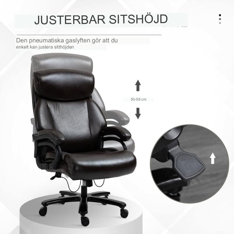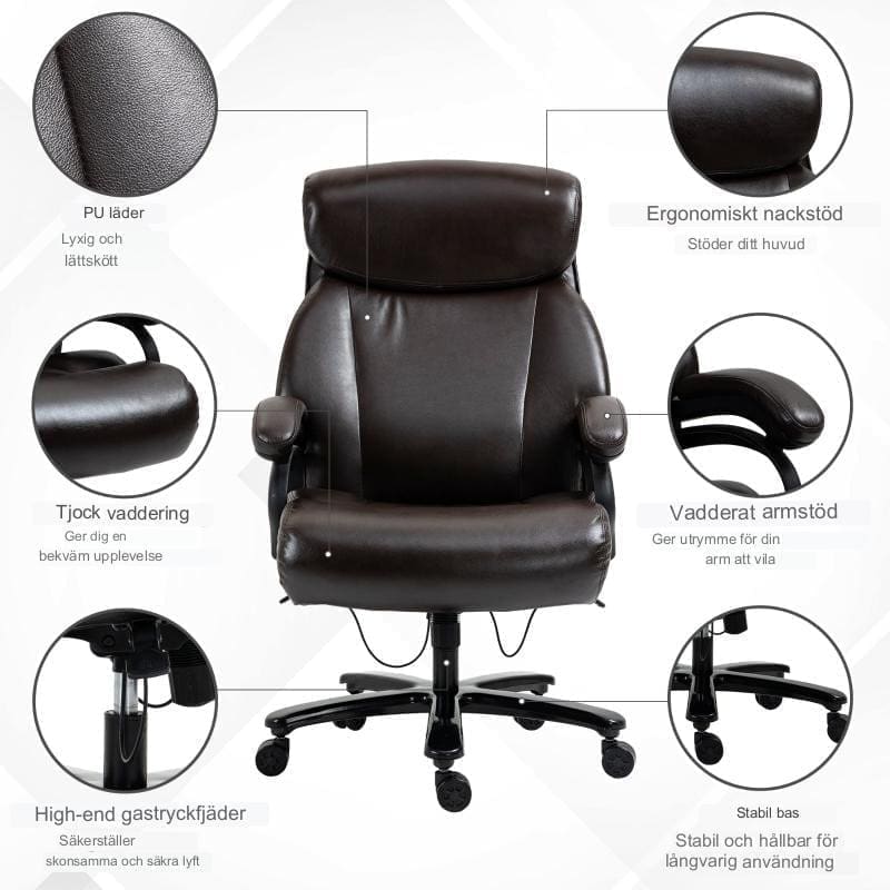 Förhöj din arbetsplats med denna eleganta och bekväma datorstol i brun PU-läder. Stolen är utrustad med ett integrerat nackstöd för extra komfort under långa arbetsdagar. Med generöst vadderade rygg- och armstöd, erbjuder den överlägsen sittkomfort och stöd. Det högkvalitativa PU-lädret ger stolen en lyxig look som passar både på kontoret och i hemmakontoret.