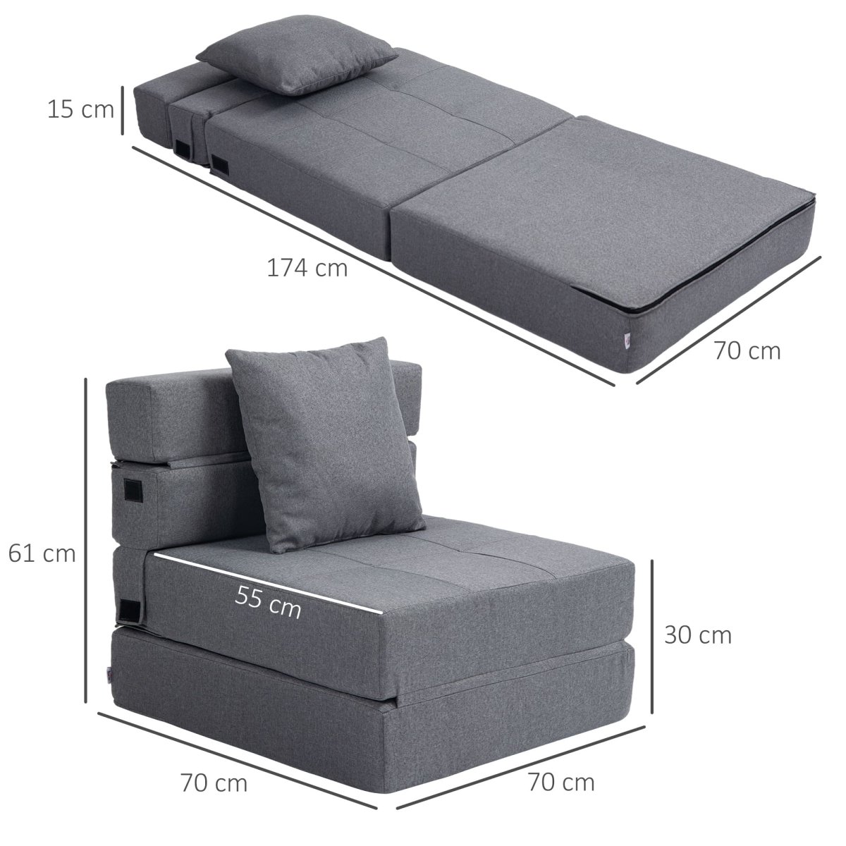 - Mått (säng): 70 x 174 x 15 cm (L x B x H)