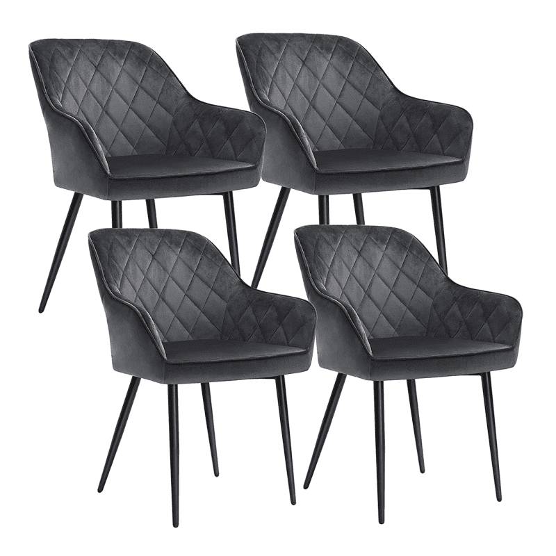 Material: Pulverbelagda metallben, träplatta, sammet, skumstoppning, storlek per stol: 62,5 x 60 x 85 cm (L x B x H)