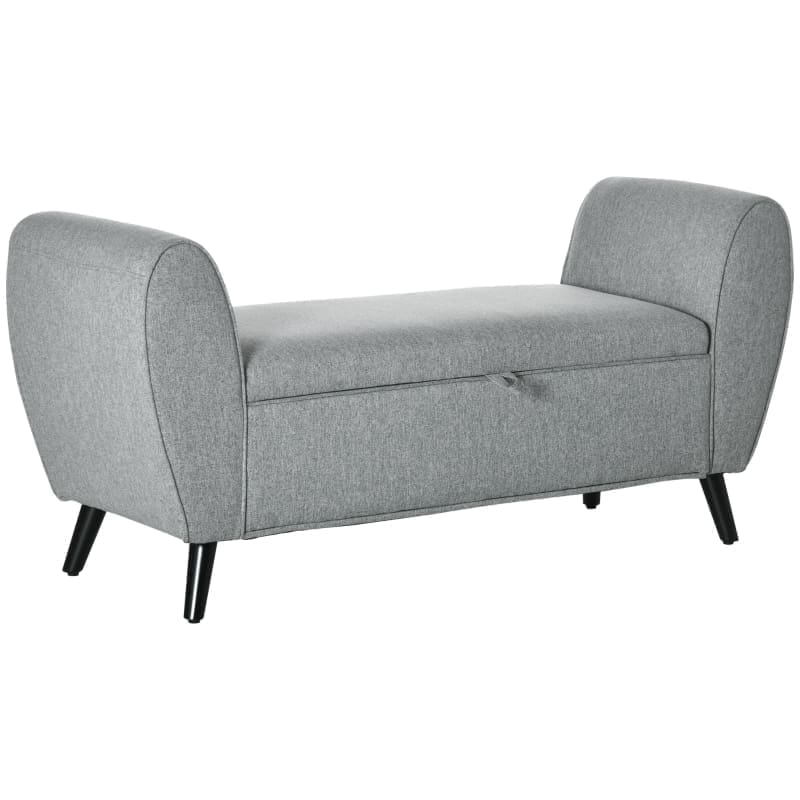 Modern Förvaringsbänk med Armstöd i Ljusgrått Linne
