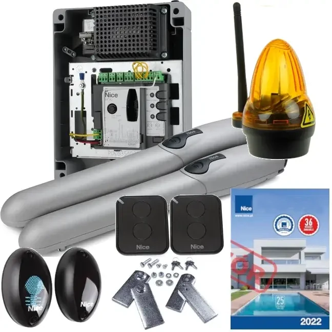 Innehåll i paketet: 2x skruvdrivare WG3524 med inbyggd ändbrytare för ÖPPNING 1x ny kontrollenhet MC424R10 med integrerad 433.92MHz radiomottagare 2x 2-knapp /2-kanals fjärrkontroll FLO2RE 2x fotocellfoto BF WiFi-kontroll + gateway-status + antenn 2x mittstötsbock på uppfarten PLA 13 1x Smart LED-lampa Fästen, nödupplåsningsnycklar – metall, monteringsdetaljer