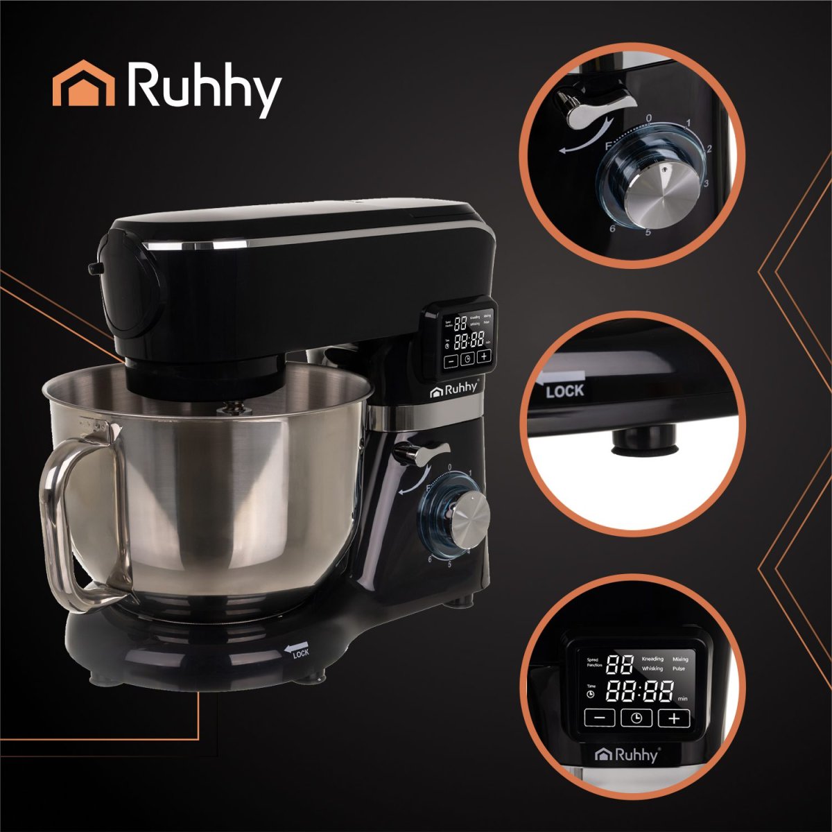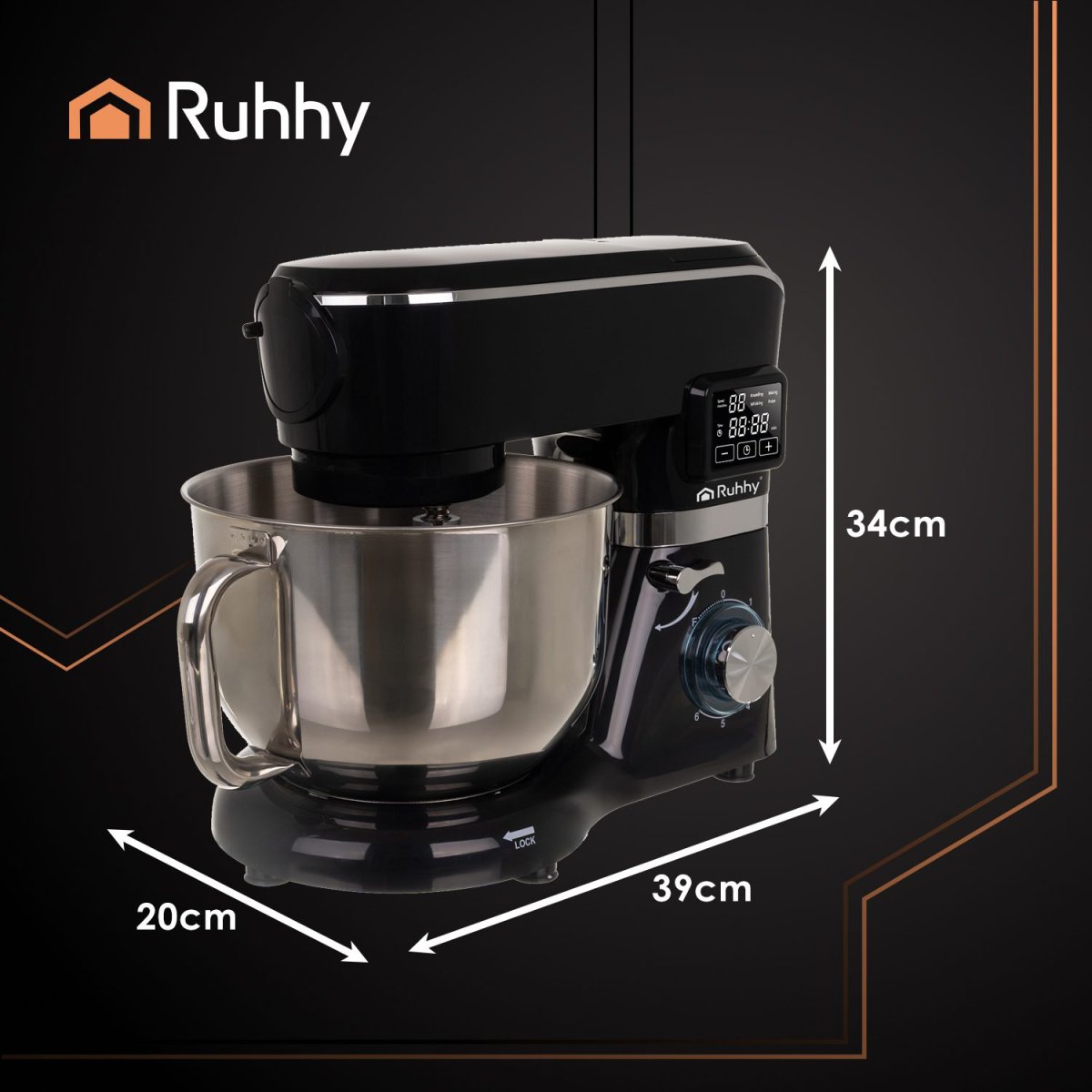 Multifunktionell Planetarisk Köksmaskin 6,2 L Svart – 2000 W, Uppvärmd Skål, Blender 1,5 L & Tillbehör