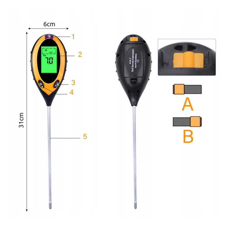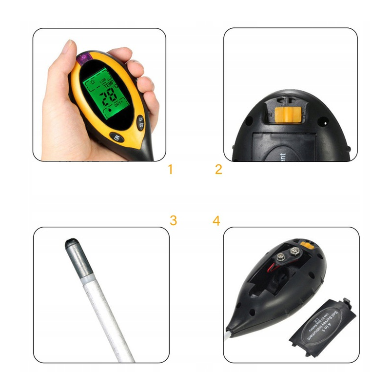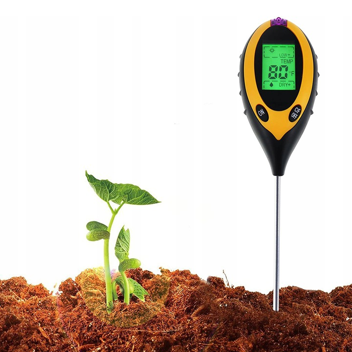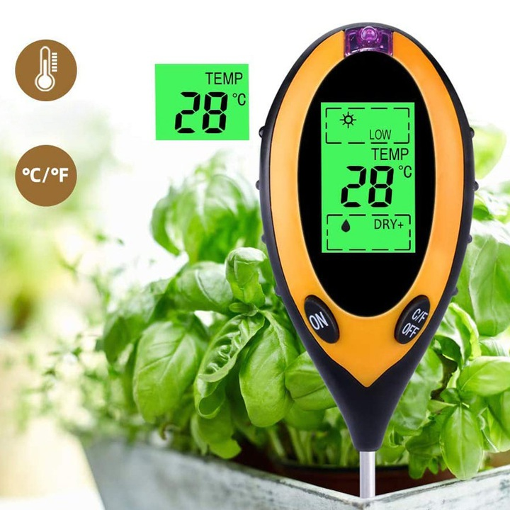 Med en pH-mätare kan du kontrollera pH-värdet i jorden, vilket är användbart när du ska odla växter och grönsaker. Denna pH-mätare kan även användas för att kontrollera jordens temperatur och fuktighetsnivå. Mätaren är enkel att använda – bara stick ned den i jorden så visas värdena på skärmen. Dessutom kan den mäta ljusintensiteten i området.