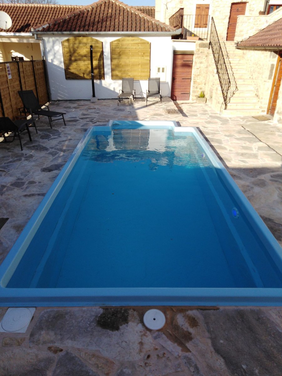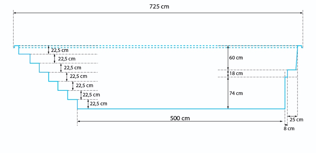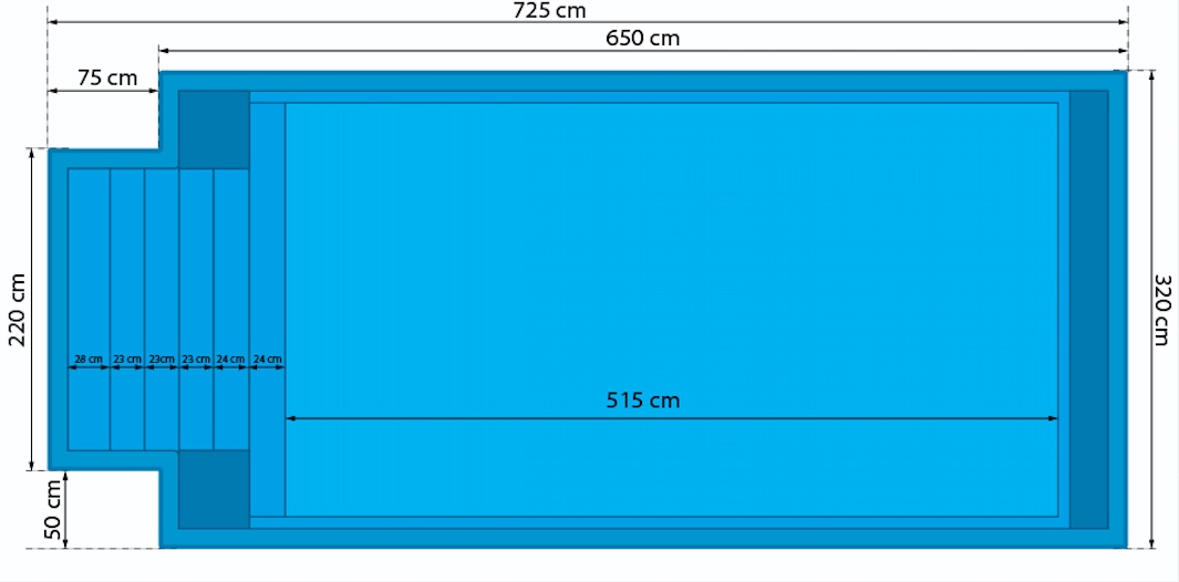 Tillverkad i glasfiber och isolerad från fabriken, vilket gör denna pool till ett utmärkt alternativ för den som vill ha en färdig pool med trappa att sänka ner i trädgården.
