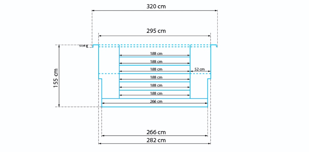 Varje poolkonstruktion förstärks dessutom med stålarmering.