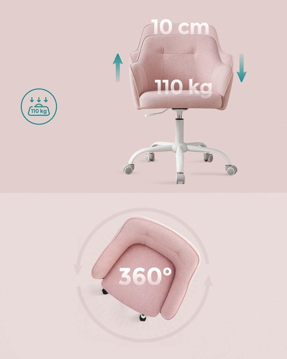 Stolens moderna, eleganta design i en mjuk rosa nyans tillför en varm och inbjudande atmosfär till din arbetsyta. Tack vare sin höga belastningskapacitet på upp till 110 kg och robusta konstruktion är den idealisk för alla kroppstyper.