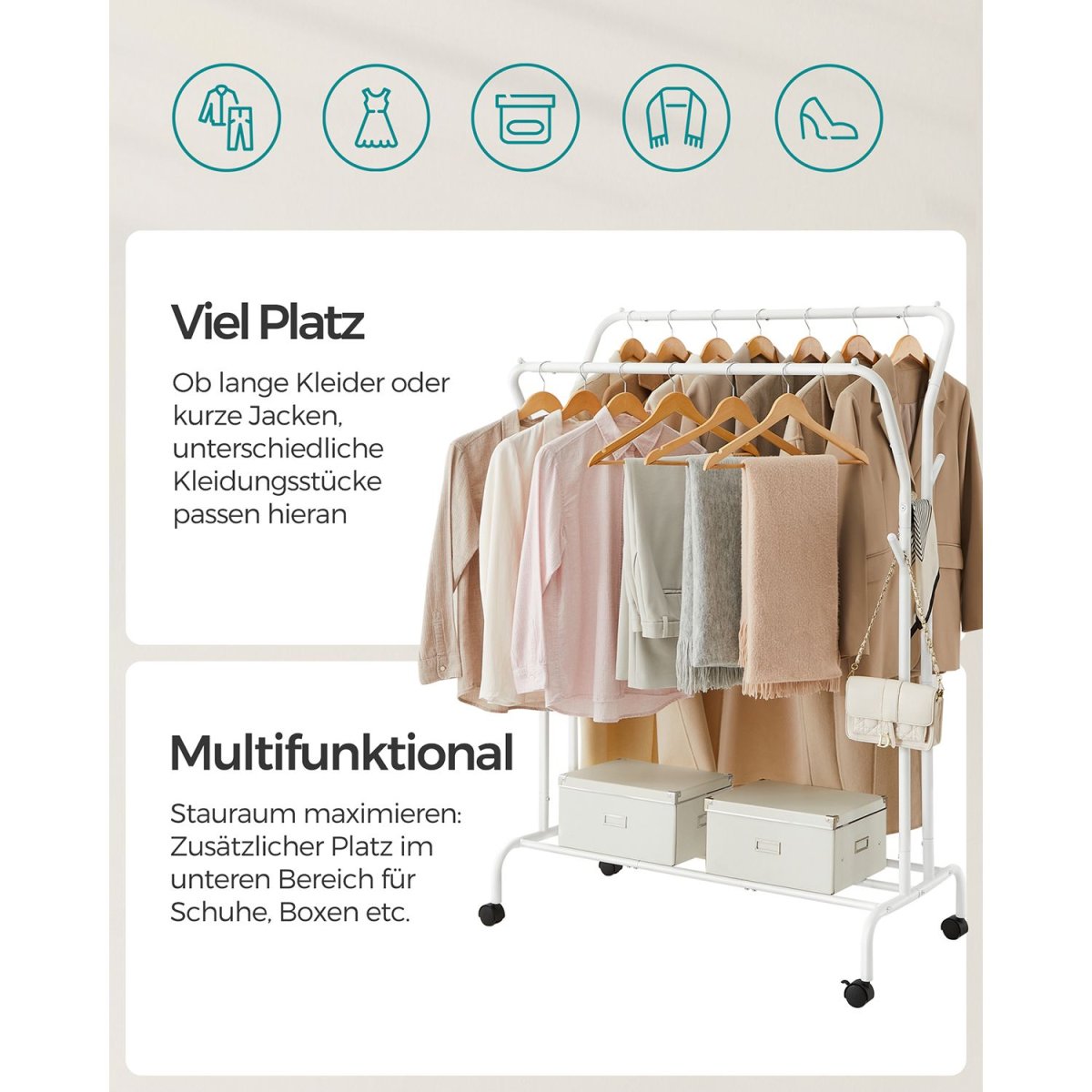 Rullbar klädhängare med dubbel stång, hög belastningskapacitet 100 kg – 103,5 × 52,5 × 155 cm