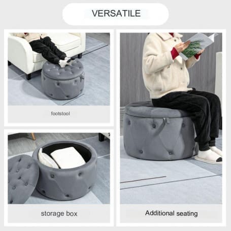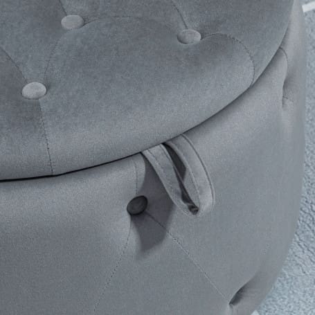 Denna runda pall kombinerar funktion och estetik med sin eleganta quiltade design och dekorativa knappar. Under det mjuka, sammetsklädda sätet döljer sig ett praktiskt förvaringsutrymme, vilket gör pallen till en smart lösning för att hålla ordning på småsaker. Den mjuka klädseln i sammet ger en lyxig känsla, medan de halkfria fötterna skyddar ditt golv från repor. Perfekt för vardagsrum, sovrum, hobbyrum och andra utrymmen där du vill skapa en hemtrevlig och mysig atmosfär.