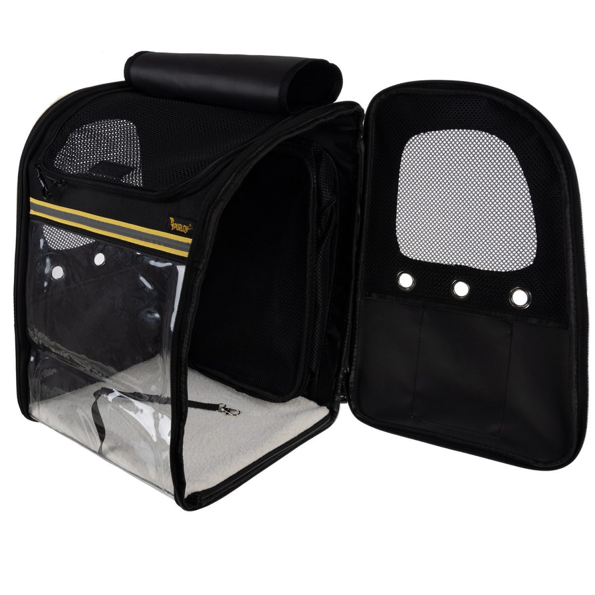 FÖRSTÄRKT KONSTRUKTION – Tillverkad av slitstarkt material med stabila, mjuka sidor samt förstärkt botten och mjuk insats upptill. Framsidan består av tjock transparent folie som låter djuret se ut och känna sig tryggt under hela resan.