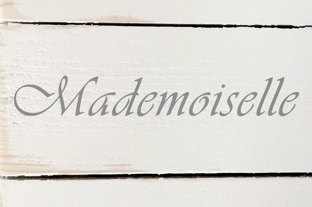 Engångsschablon i lantlig stil med texten ‘Mademoiselle’. Schablonen går att måla på inredning såsom väggar, golv, dörrar eller möbler. Storlek: 7,5 x 52 cm. Utförlig bruksanvisning medföljer. För att läsa bruksanvisningen online klicka här »