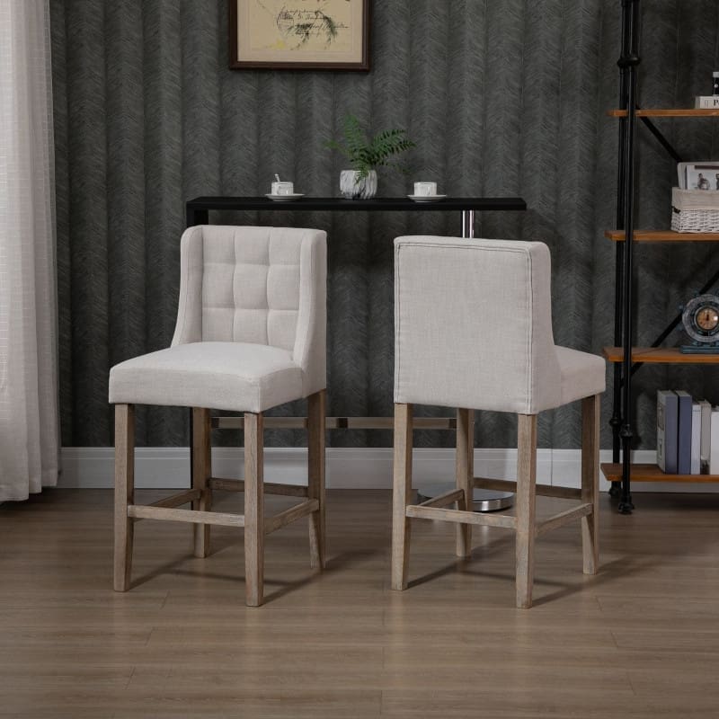 Set med 2 Barstolar i Beige med Klassisk Tuftning och Bekväm Sittkomfort