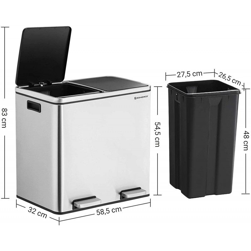 Soptunna med två fack och pedal, rostfritt stål, 48 L (2×24 L)