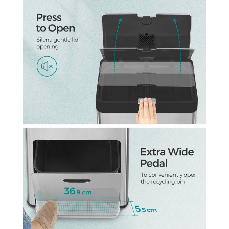 Total volym på 60 liter som ger plats för vardagens avfall utan att ta onödig yta